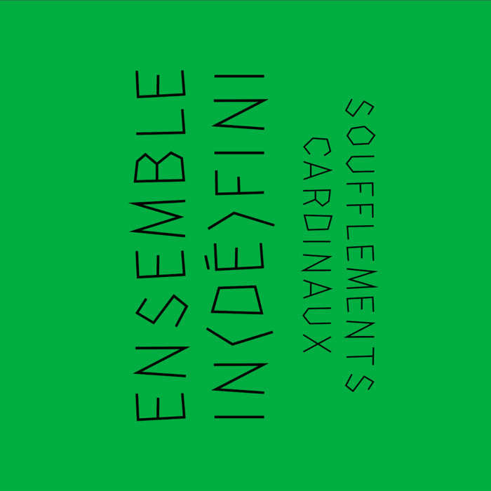 Enregistré à la Chapelle du Bon Sauveur à Albi, mixé au GMEA-CNCM, Soufflements cardinaux est un enregistrement qui rassemble quatre compositeurs pour créer ensemble deux pièces, partager compositions et interprétation : initié par Hervé Boghossian (guitares), l’Ensemble In(dé)fini c’est aussi Merve Salgar (tanbur), Félix Chaillou-Delecourt (vielle à roue, orgue d’église) et Owen Gardner (guitare microtonale électrique). L’idée est de casser la hiérarchie qui continue à s’imposer dans le milieu de la musique contemporaine à travers la division des tâches, comme l’imposent le capitalisme et son spectacle, y compris dans le champ de la culture, la hiérarchie qui prétend que l’on descend du compositeur à l’interprète en passant par le chef d’orchestre. Difficile, à l’écoute de Soufflements cardinaux, de se rendre compte de la procédure, de la façon dont les idées de chacun se sont développées et ont pris leur place dans la composition d’ensemble, mais au fond, cette question n’a d’importance que pour les quatre musiciens. Ce qui nous importe, c’est la musique qu’ils nous donnent à entendre. Sur ces deux faces, des paysages se succèdent, se chevauchent et disparaissent : on passe de climats minimalistes faits de cordes frottées à un blues qui évoque Paris, Texas, à travers une suite d’arpèges bouclés joués en direct, des riffs folks répétitifs, des agrégats sonores déconstruits. La composition s’achève dans un long drone, ligne noire tracée sur la portée, l’infini rêvé.