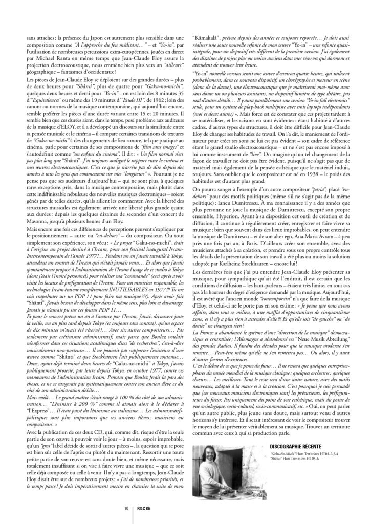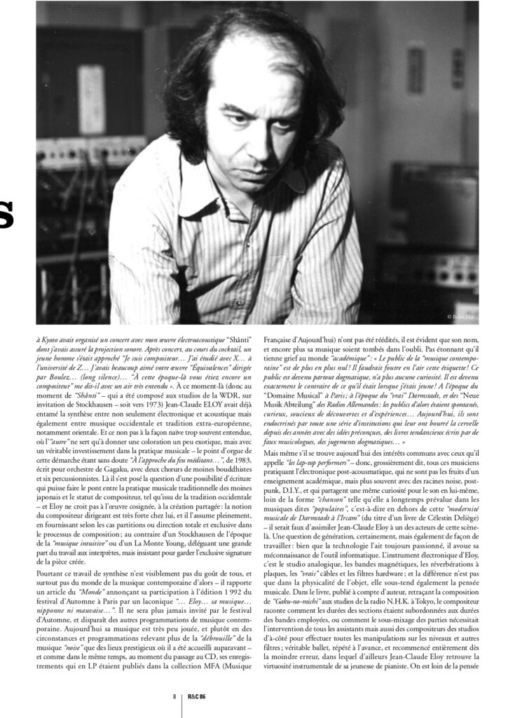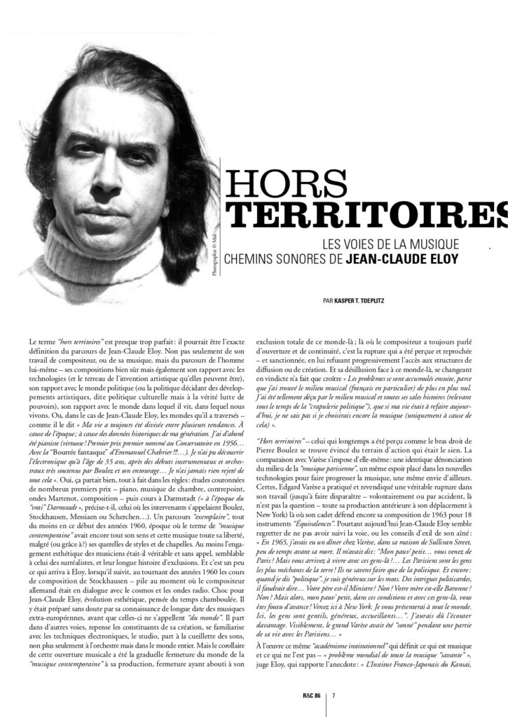 nous publions ici, en fac-similé, le 1er article écrit par Kasper T. Toeplitz sur Jean-Claude Éloy dans R&C, paru dans le n° 86 (décembre 2010).
